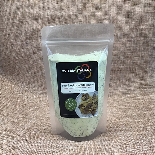 Authentic and aromatic Italian black truffles combined with rich, earthy mushrooms and thick vegan cream to produce this intensely flavorful sauce. This ready-to-use gourmet sauce turns any pasta into a memorable dish. It is fantastic with fresh pappardelle or tagliatelle.